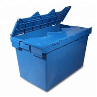 प्लास्टिक आयत यूरोप स्थानांतरित कर रहे टोटे टर्नओवर बॉक्स गोदाम गोदाम भंडारण पीपी संलग्न ढक्कन स्टैकयोग्य कंटेनर 35L क्षमता 10 किलोग्राम